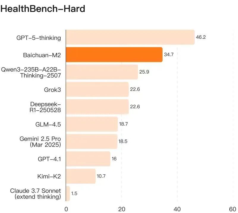 In August this year, Baichuan Intelligence launched a new medical large model, Baichuan - M2. It has only 32B parameters, but it outperforms open - source/closed - source models several times its size in various benchmark tests. Designed for real - world medical reasoning tasks, Baichuan - M2 supports single - card deployment on RTX4090, which means that even small and medium - sized medical institutions have the conditions for private deployment.