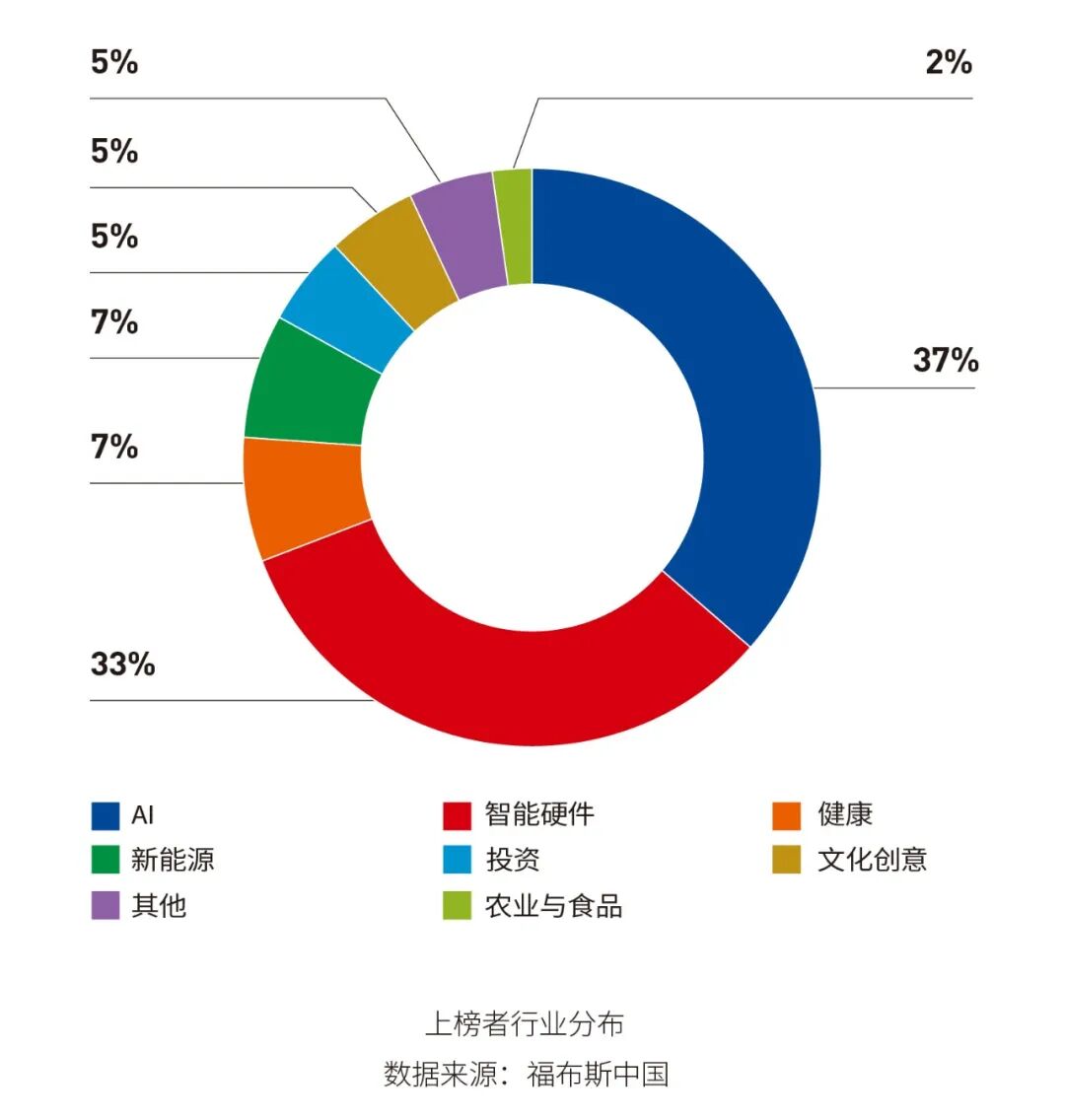 In the 2025 Forbes China 30 Under 30 list, entrepreneurs in the AI and intelligent hardware fields account for the largest proportion. Among them, there are 22 entrepreneurs whose main business focuses on AI software and applications, accounting for 37%. And there are 20 entrepreneurs in the intelligent hardware field, accounting for 33%, significantly higher than the corresponding lists in North America and Europe. Behind this phenomenon is not only the booming development of China's AI industry but also its complete manufacturing system and in - depth supply chain. Based on this, even in niche markets with highly segmented demands, many companies can emerge and compete side by side.