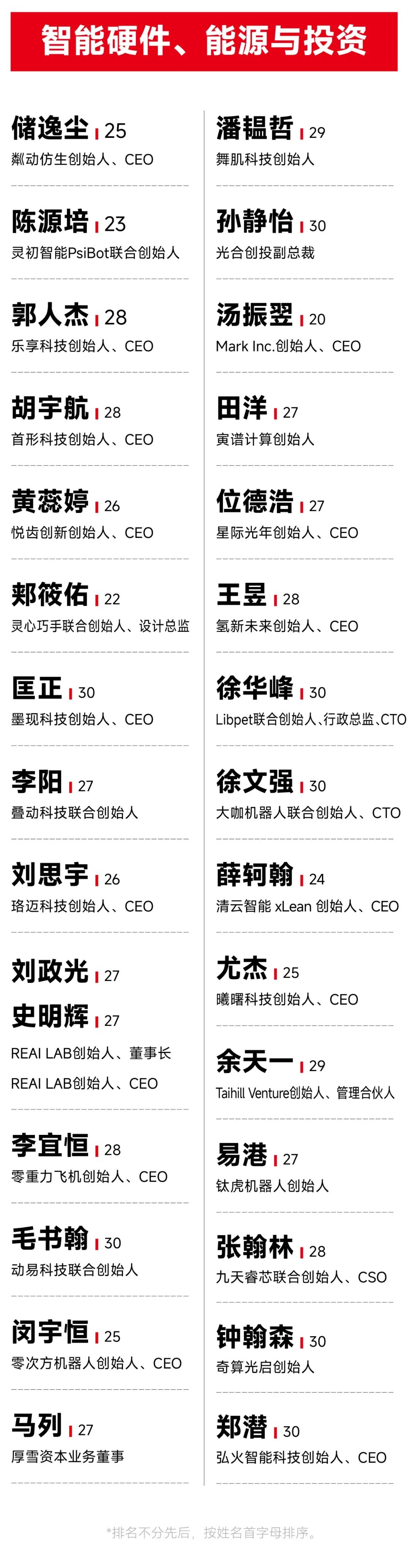 They are usually founders of highly successful startups, decision - makers leading key projects in large companies, or important promoters driving the industrialization of scientific and technological achievements. Those on the list must be born on or after January 1, 1995, and their age is calculated based on the selection year. (Note: The headquarters, main operating teams, or core businesses of the candidates' affiliated enterprises need to be located in mainland China.)