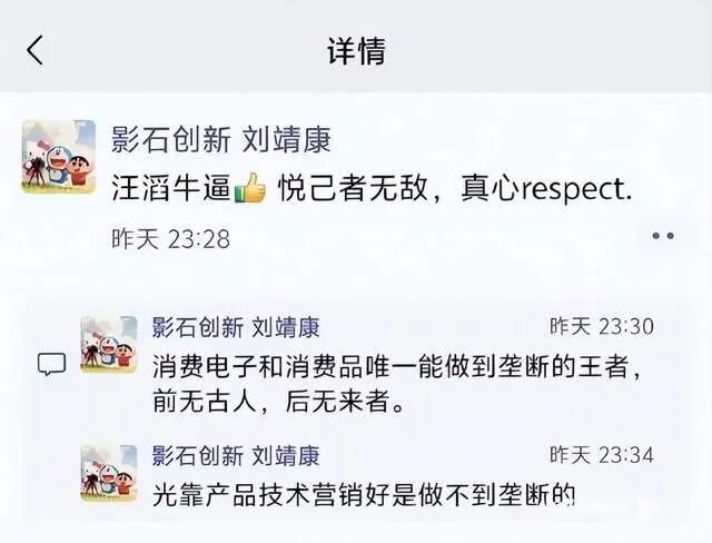 At the end of October 2025, Liu Jingkang also mentioned Wang Tao, the founder of DJI, in his WeChat Moments: "Those who please themselves are invincible. I really respect him. He is the only king who can achieve a monopoly in consumer electronics and consumer goods, without precedent and without a successor."