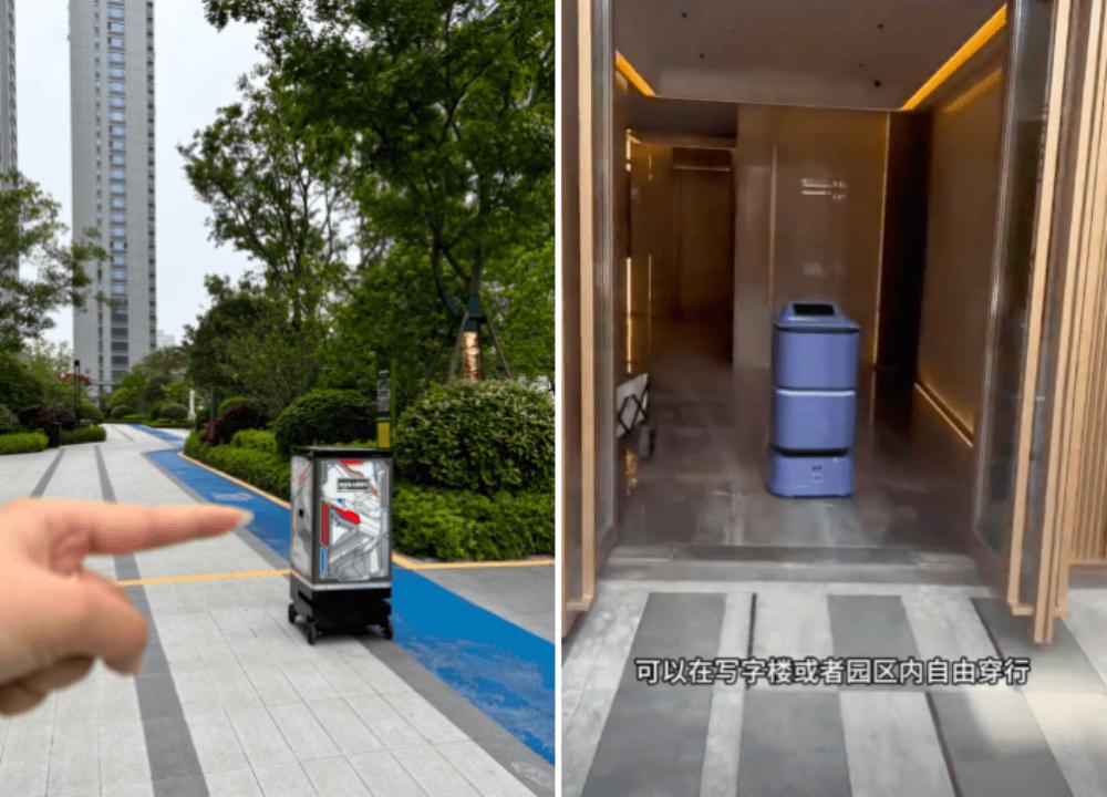There are square boxes in the elevators that can press the floor buttons by themselves. Automatic cleaning machines can often be seen in outdoor areas during the day, and the indoor public areas are also gradually being cleaned by robots.