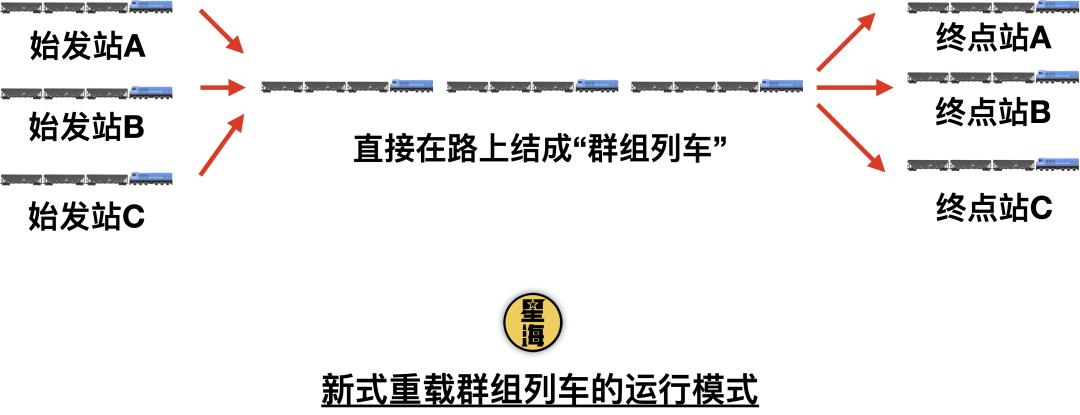 But in the new mode of group trains, since the trains are originally separate, there is no need for secondary assembly. Therefore, there is no need to gather at the marshalling station. Under the centralized command of the system, each train can take its own route and finally converge on the main line.