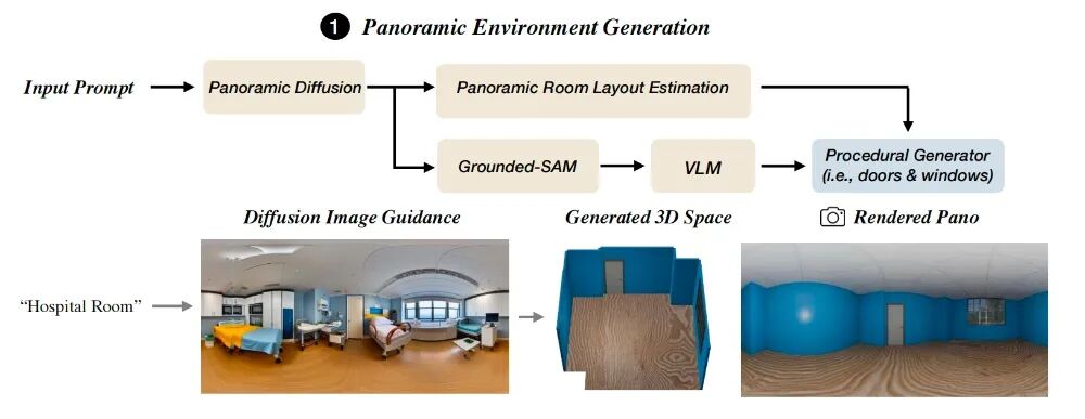 Specifically, the research team first generates a 360° guiding image through a panoramic diffusion model. This step is equivalent to drawing a floor plan first, and all subsequent construction will be based on this image.