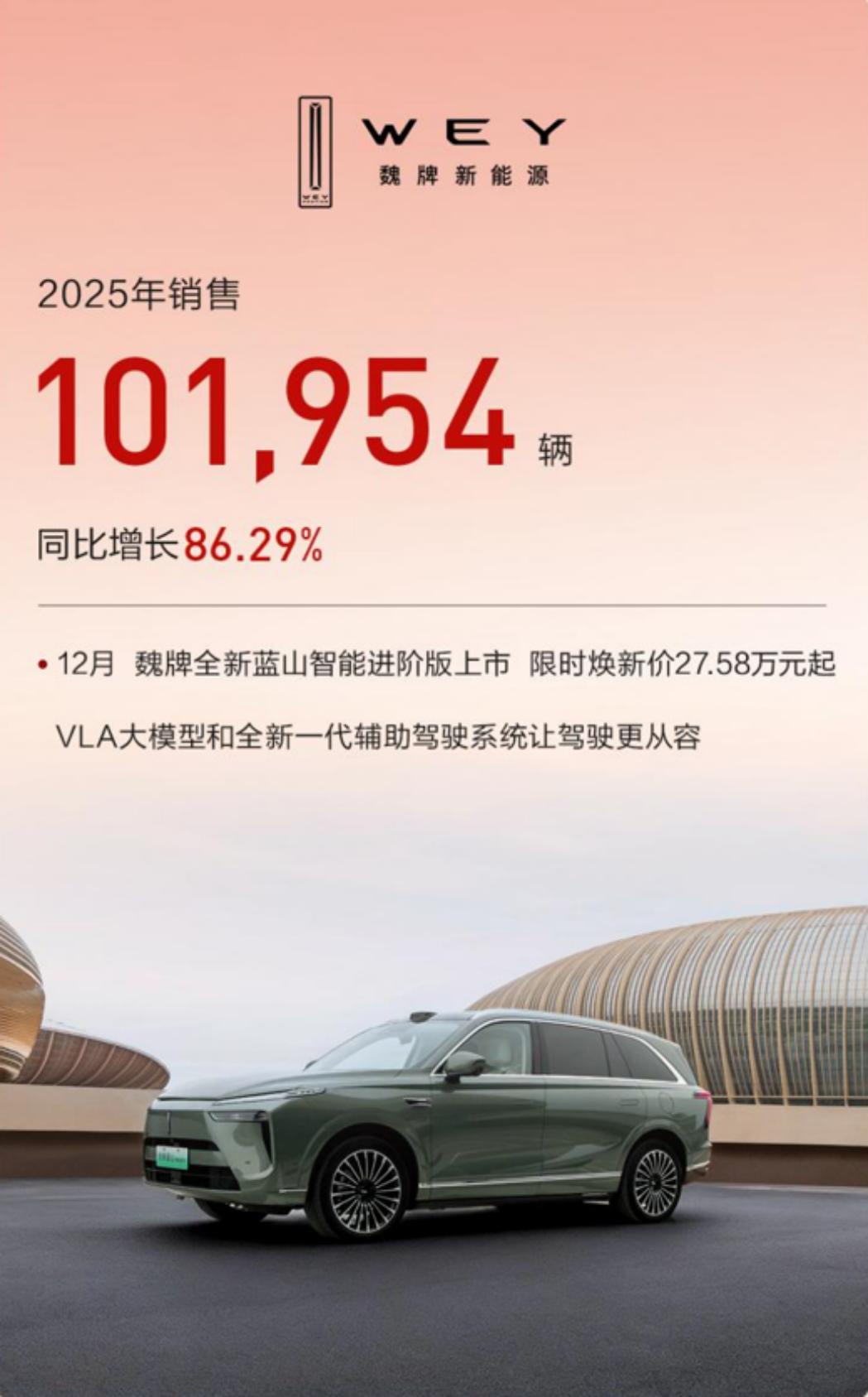 However, in terms of segmentation, the sales volume of high - end models represented by WEY still accounted for a relatively low proportion. In 2025, WEY sold 102,000 vehicles, although the year - on - year increase reached 86%, it only accounted for 7.7% of Great Wall Motors' total sales. Horizontally compared, the annual sales volume of 100,000 units is not outstanding in the high - end market.