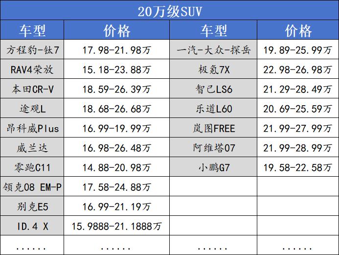 Therefore, the 200,000-yuan price range is at a delicate crossroads: Looking down, it's the market in the 150,000 - 200,000-yuan range, dominated by compact SUVs and focusing on high cost-performance. Looking up, it's the area in the 200,000 - 250,000-yuan range, where mid-size SUVs take the lead and emphasize a premium experience.