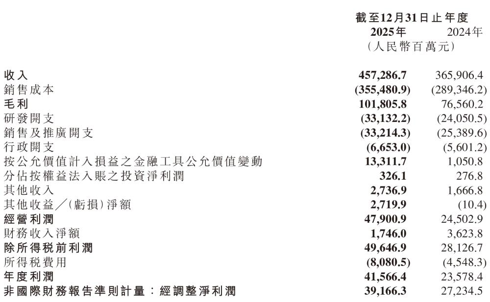 According to the full - year performance announcement of Xiaomi Group in 2025, Xiaomi Group's full - year revenue in 2025 was 457.3 billion yuan, a year - on - year increase of 25.0%. The adjusted full - year net profit was 39.2 billion yuan, a year - on - year increase of 43.8%.