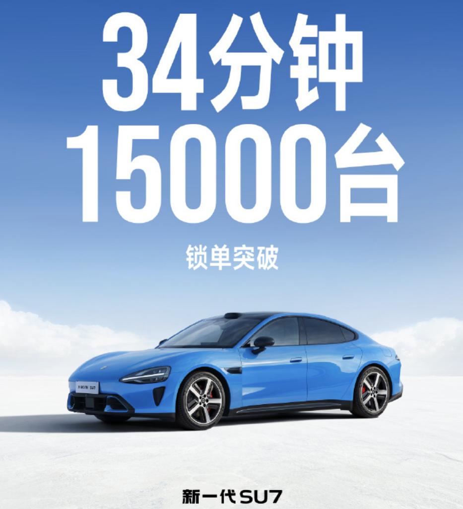 15,000 locked orders for the new - generation Xiaomi SU7 in 34 minutes