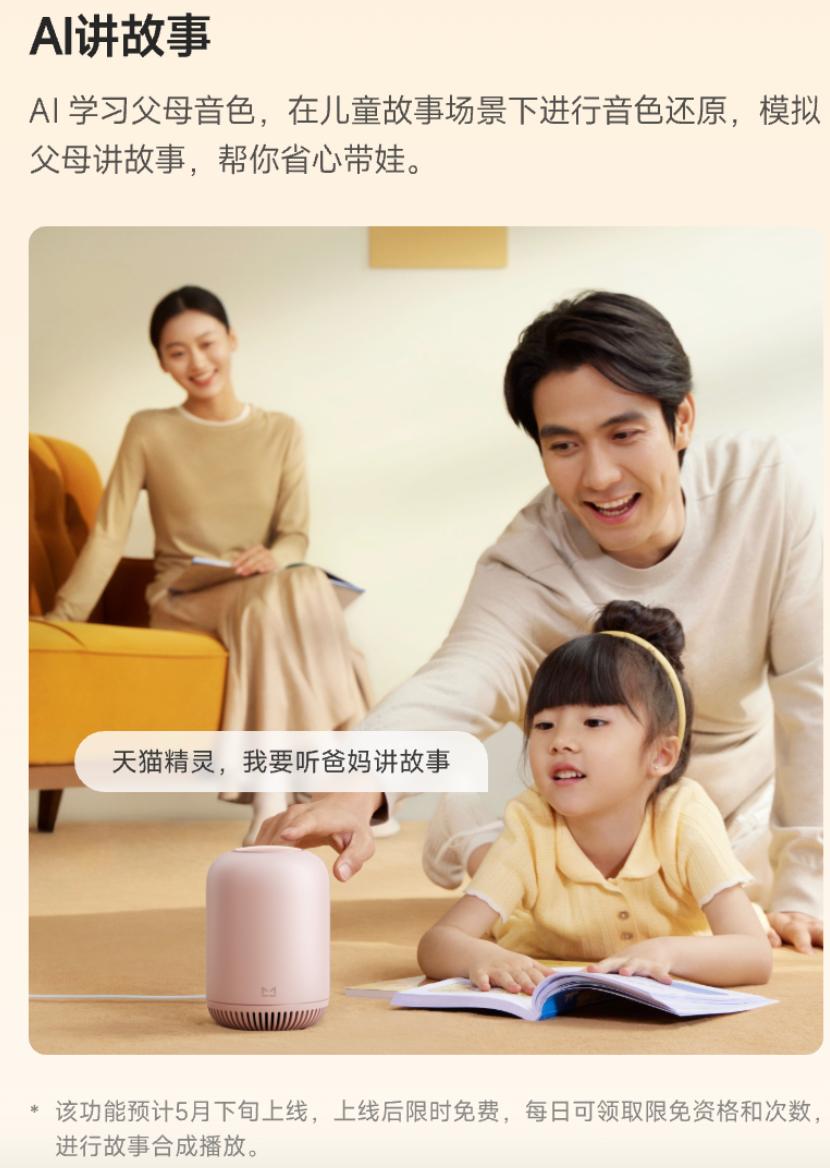 For instance, the storytelling function of Tmall Genie will undergo a major upgrade. It can not only make sounds according to user needs but also learn the voices of parents through AI technology to provide more emotional value for children.