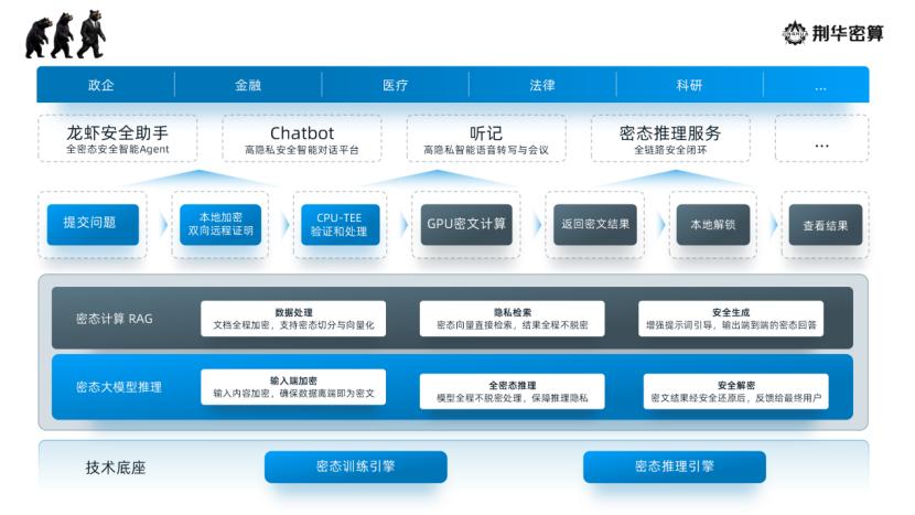 In terms of product layout, Jinghua Cryptographic Computing provides high - level local private - domain deployment solutions for industries with high data sensitivity, building a cryptographic computing protection system covering the entire process of "input - inference - output"; for developers and C - end users, it launches a cryptographic inference platform and "Lobster Security Guard", supporting plug - and - play across platforms and multiple terminals; at the same time, for high - value private - domain data fields, based on the cryptographic training engine, it realizes the rental - style sale of data in real ciphertext form. The first batch of commercial implementation scenarios cover industries such as government and enterprise, finance, healthcare, law, and scientific research.