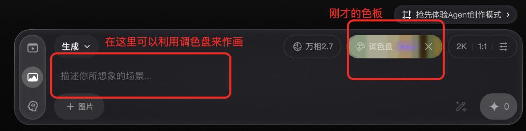 Step 3: After confirming the color scheme, return to the main interface. The color palette will be attached to the toolbar. Enter the scene description and click "Generate," and the generated image will strictly follow the color scheme you defined.