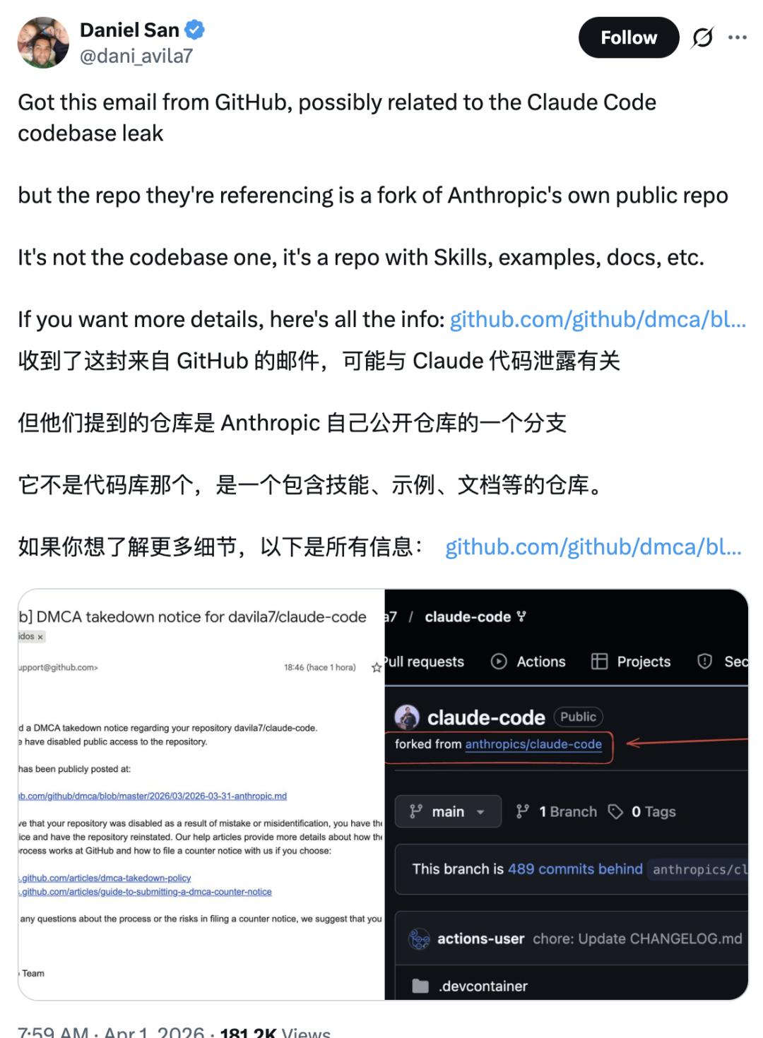AI executive Daniel San was one of the victims. After receiving a warning email from GitHub, he felt wronged and said that he was using a fork of Anthropic's own public repository.