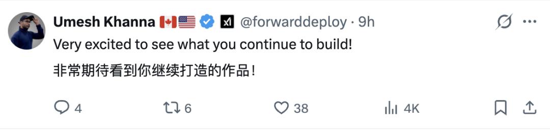 "I'm super excited to see the subsequent results you come up with!" Umesh Khanna from xAI suddenly appeared in the comment section and replied like this.