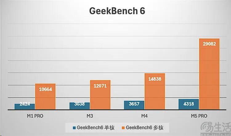 From our actual test results, compared with the previous generations of models equipped with M - series chips, the single - core performance of the super cores of the M5 Pro doesn't improve significantly because the decoding width is the same as that of the previous large cores. But obviously, with more cores and a larger - scale "performance core", its multi - core performance far exceeds that of ordinary "big - little core" processors.