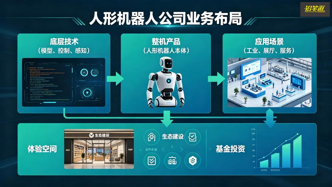 They are working on underlying technologies (models, control, perception) on one hand, on whole - machine products (humanoid robot bodies) on the other hand, and expanding scenarios (industry, exhibition halls, services) at the same time. They are also opening experience spaces, building ecosystems, and even setting up funds and making investments.