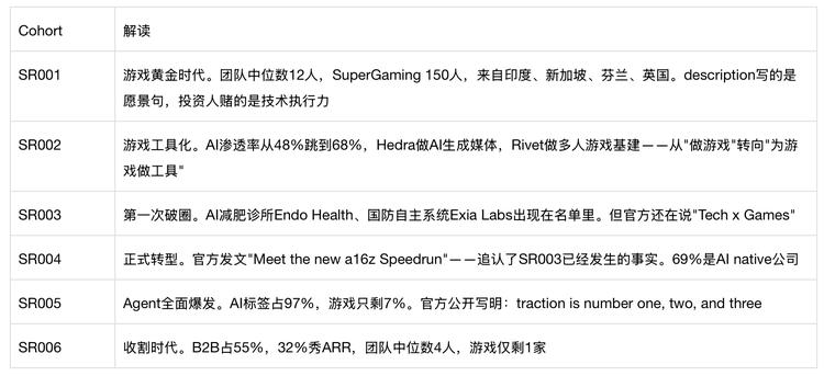 Speedrun was originally a project under the a16z GAMES fund. As the name suggests, it was a game accelerator. However, in 2023, GPT - 4 triggered the AI wave, and a16z immediately invested heavily in the AI track and established a dedicated AI fund. As more and more money from LPs was directed towards AI, the game narrative was no longer attractive on the fundraising side. The fund's mandate expanded from pure games to "AI broadly". As the outpost project of the fund, the portfolio of Speedrun naturally shifted. This is not a change in the personal preference of a certain partner but the transmission effect of the entire capital chain from LPs to GPs to the portfolio - SR003 was the turning point, and SR006 is the result.