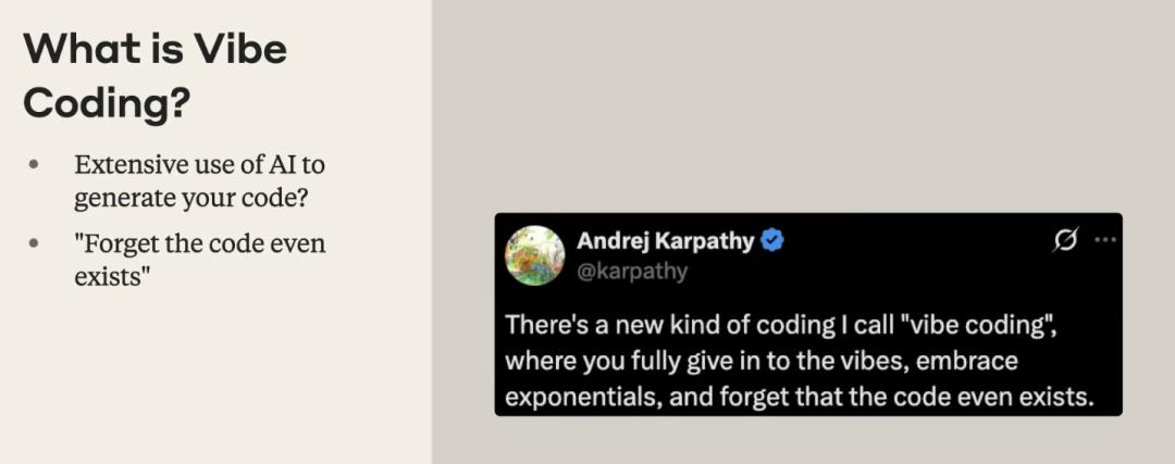 Andre Karpathy gave a more precise definition: "Completely immerse in the vibe, embrace the exponential growth of technology, and completely forget about the existence of code."