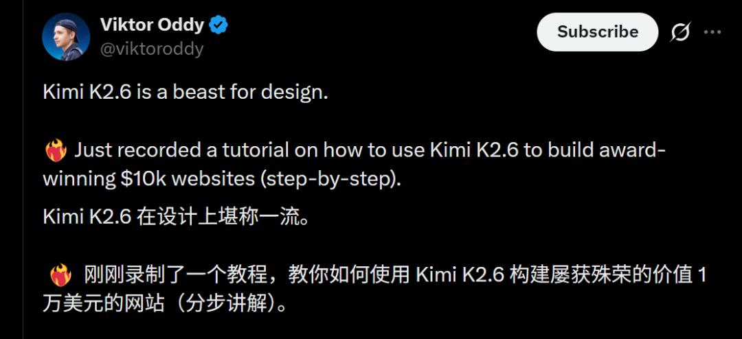 After seeing the powerful design ability of Kimi K2.6, blogger @Viktor Oddy quickly made a teaching video that lasts for more than ten minutes overnight.