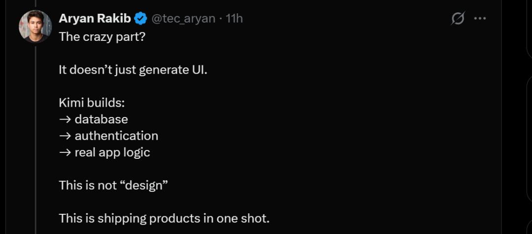 Just recently, 𝕏 blogger @Aryan Rakib conducted a series of actual tests, thoroughly exploring the front - end + vibe coding capabilities of Kimi K2.6.
