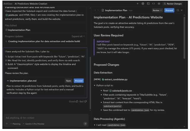 Zusammen mit Gemini 3 hat Google auch Antigravity veröffentlicht. Programmierer verstehen sofort: Es ist ähnlich wie Claude Code und OpenAI Codex und gibt Ihnen Zugang zu Ihrem Computer, um unter Anleitung autonom Programme zu schreiben.