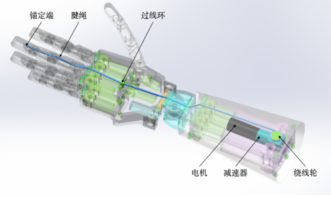 Within the limited space of the size of a human hand, more than 20 degrees of freedom must be integrated. The cable - drive concept significantly simplifies the mechanical structure at the finger end by replacing rigid gears and linkages with flexible "cables". One or more cables can cross multiple joints to enable coupled movement or independent control. This makes it possible to realize complex multi - joint movements in a high - density space and paves the way for the design of a human - like dexterous hand with over 20 degrees of freedom.