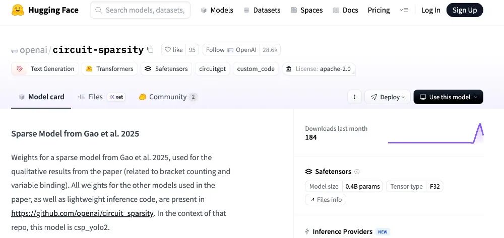 Zhidongxi berichtete am 15. Dezember. Gestern hat OpenAI ein neues Modell namens Circuit-Sparsity open source gestellt. Die Anzahl der Modellparameter beträgt nur 0,4 Milliarden, und 99,9 % der Gewichte sind null.