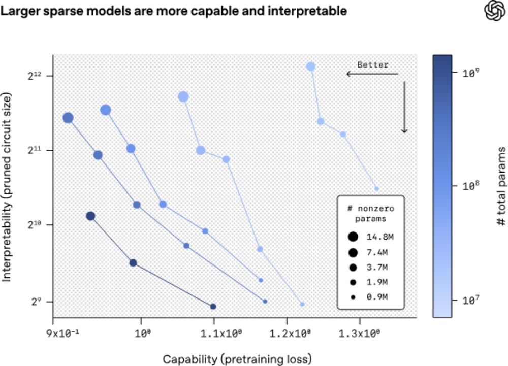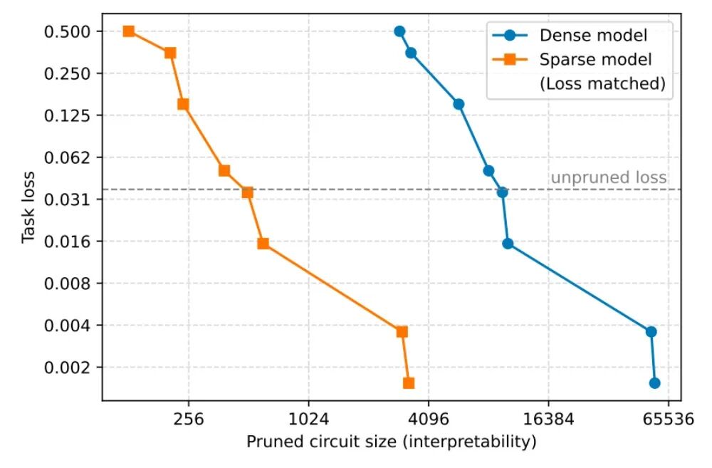 Die Schaltkreise des spärlichen Modells sind um das 16-fache kleiner als die des dichten Modells (Quelle: OpenAI-Technologiepapier)