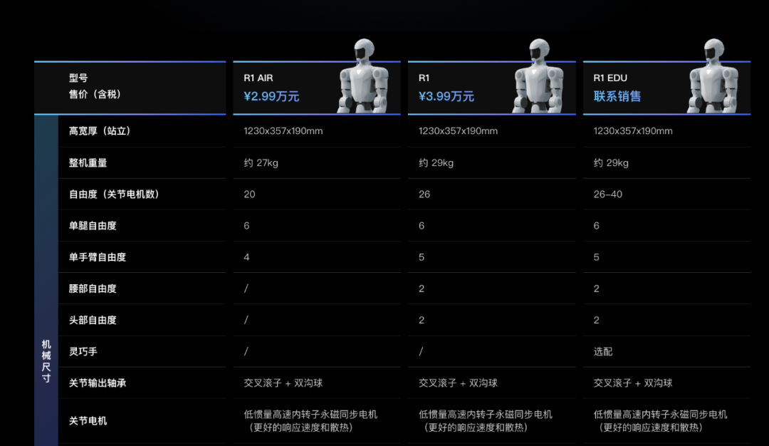 Preise und Konfigurationen der verschiedenen Versionen des Roboters R1 von Unitree Technology, Bildquelle: Offizielle Website von Unitree Technology