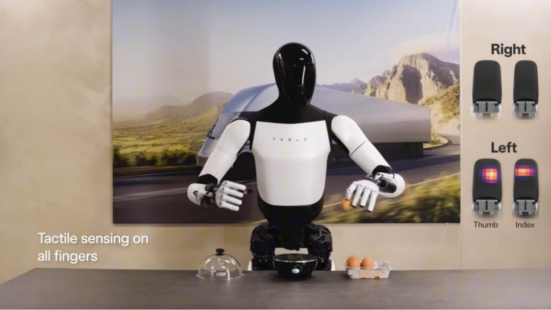 Bild: Optimus greift ein Ei und nutzt taktile Sensoren