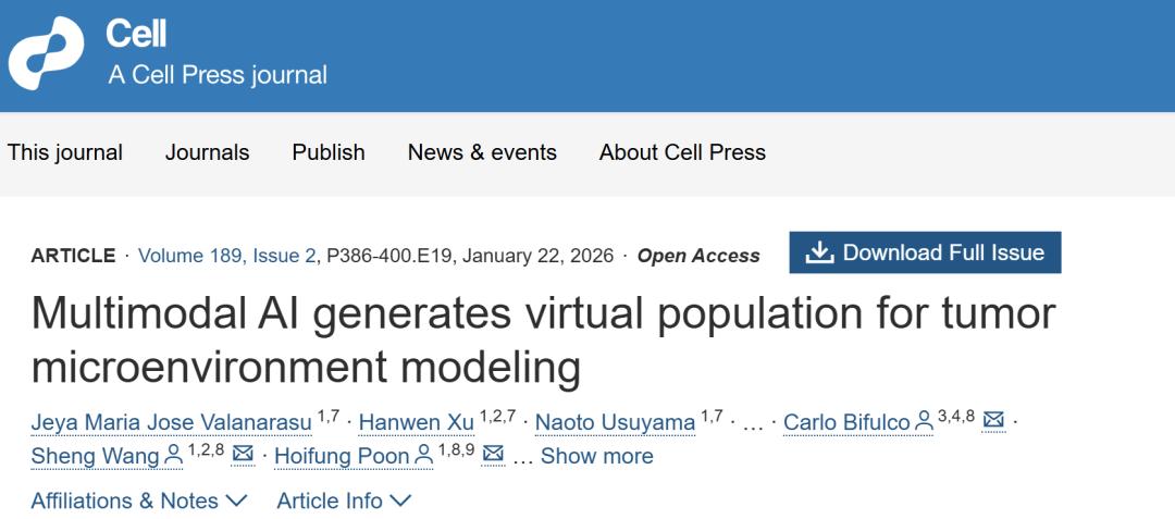 Die zugehörigen Forschungsergebnisse wurden unter dem Titel "Multimodal AI generates virtual population for tumor microenvironment modeling" in der Zeitschrift Cell veröffentlicht.