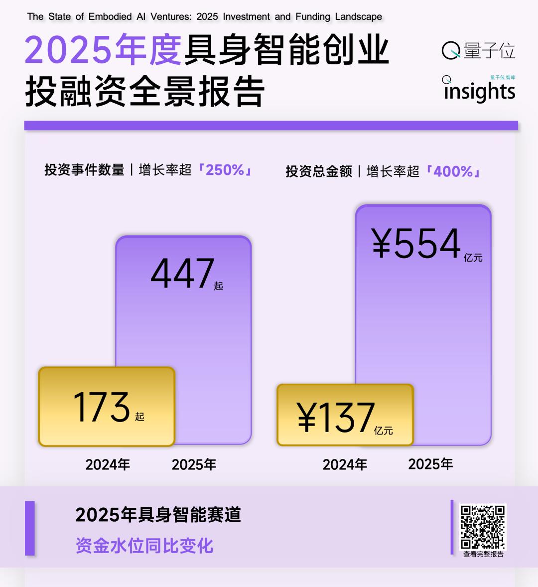 Im Jahr 2025 stieg die Anzahl der Investitionen in den Bereich Embodied Intelligence von 173 im Jahr 2024 auf 447, und das Kapital, das in diesen Bereich strömte, stieg von 13,7 Milliarden Yuan auf 55,4 Milliarden Yuan. Das entspricht einem Anstieg von über 250 % bzw. 400 %.