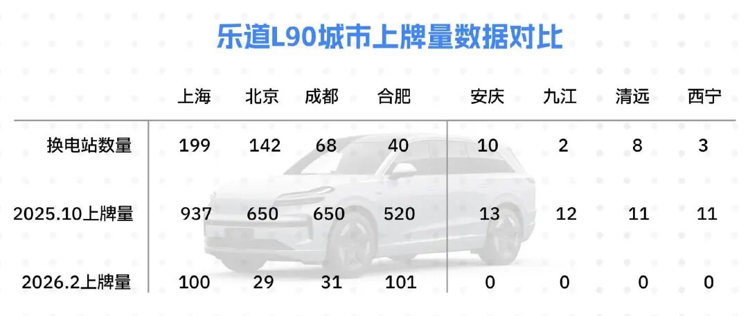 Im Oktober 2025 hat das LeDao L90 seine bisher höchsten Verkaufszahlen von 11.700 Exemplaren erreicht. 36Kr hat die Verkaufszahlen und die Anzahl der Batteriewechselstationen in acht Städten mit den höchsten Zulassungsraten in diesem Monat zusammengefasst.