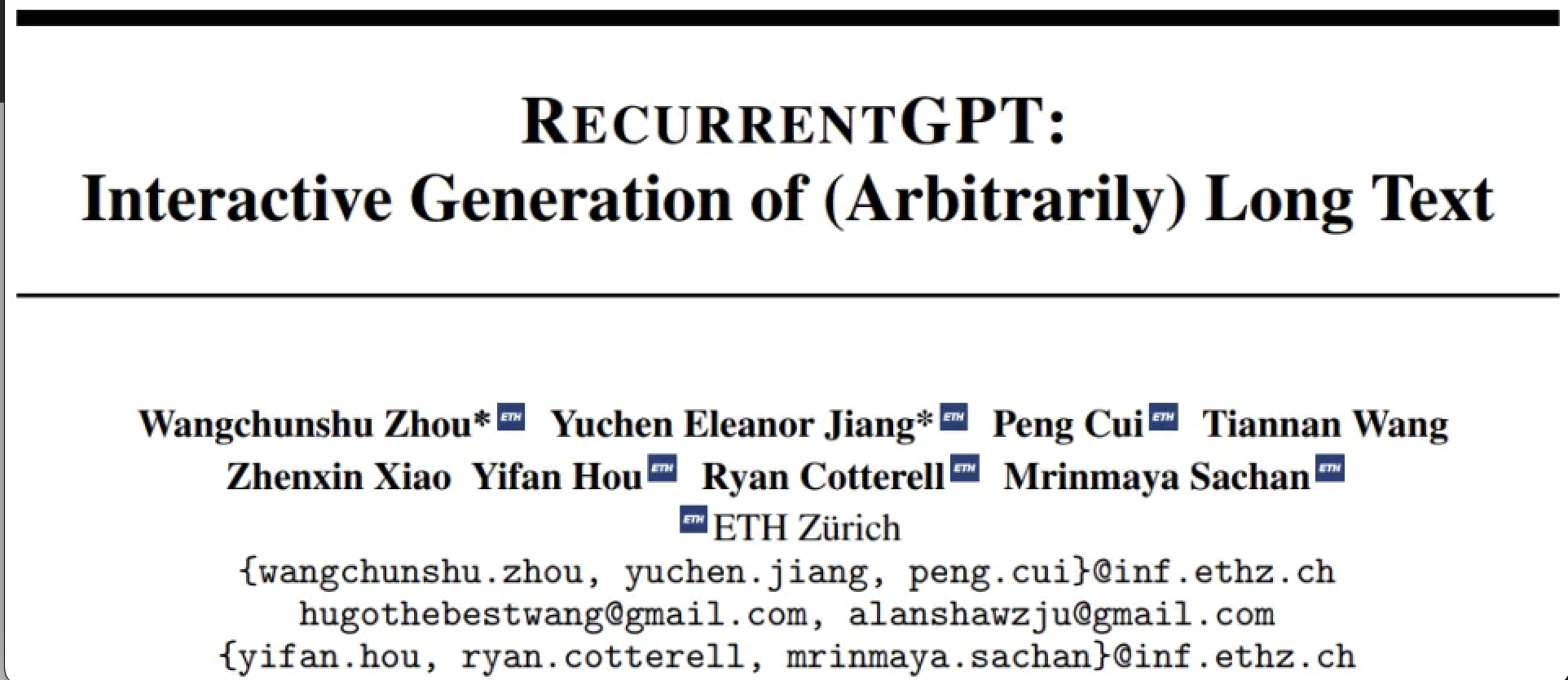 These two core members are also the first and second authors of the paper "RecurrentGPT: Interactive Generation of (Arbitrarily) Long Text" that has attracted much attention in the circle. The new training paradigm ReccurentGPT they proposed can achieve a text generation speed three times faster than GPT-4, and at the same time, it can generate infinitely long text while controlling the reasoning cost.