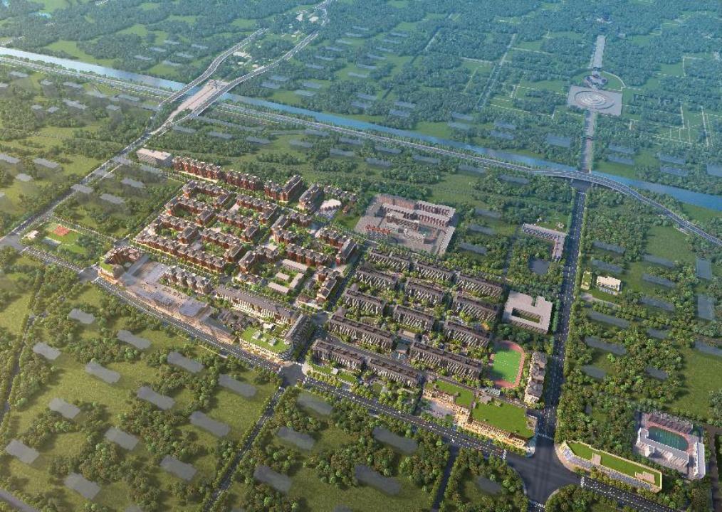 Aerial view and renderings of the Tiantan Mansion project