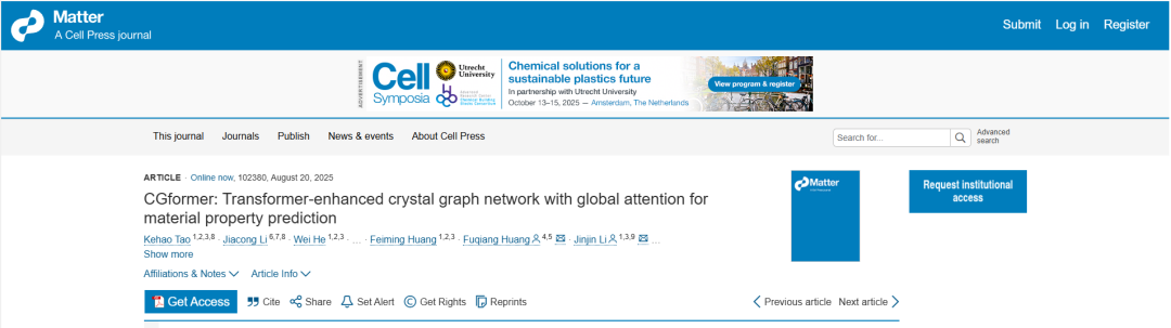 Paper address: https://www.cell.com/matter/abstract/S2590 - 2385(25)00423 - 0