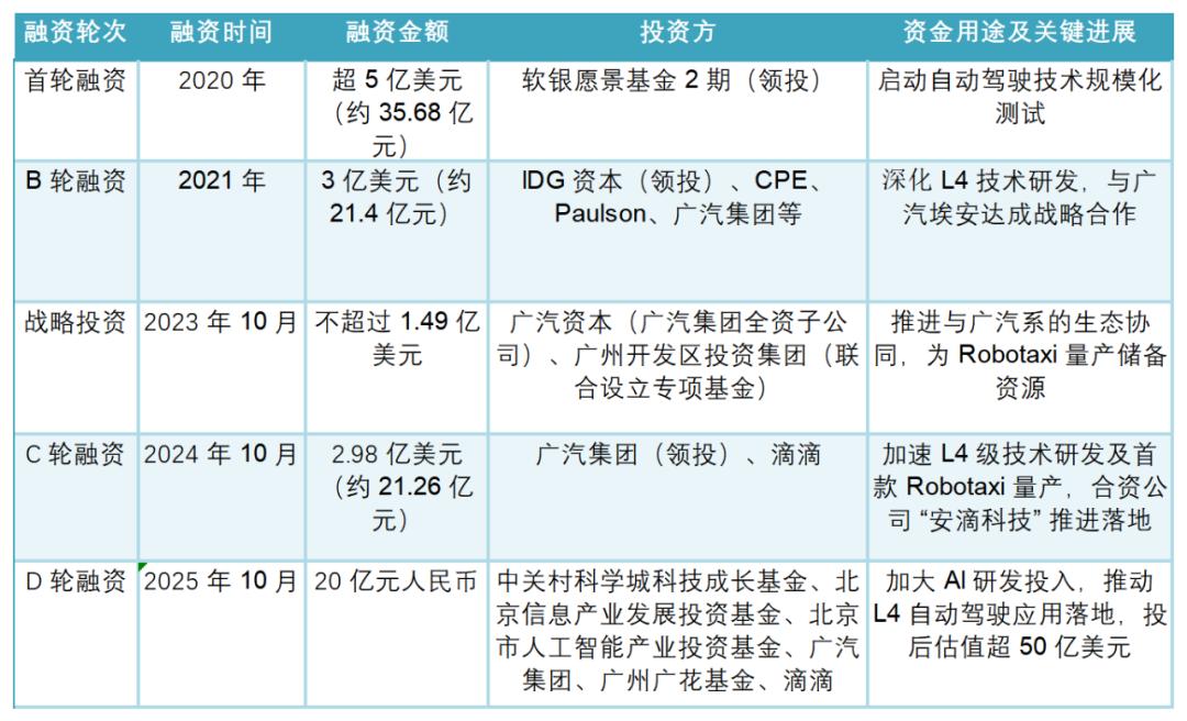 Last October, DiDi's autonomous driving team completed a Series C financing round of $298 million (equivalent to approximately 2.126 billion yuan). It was led by GAC Group.