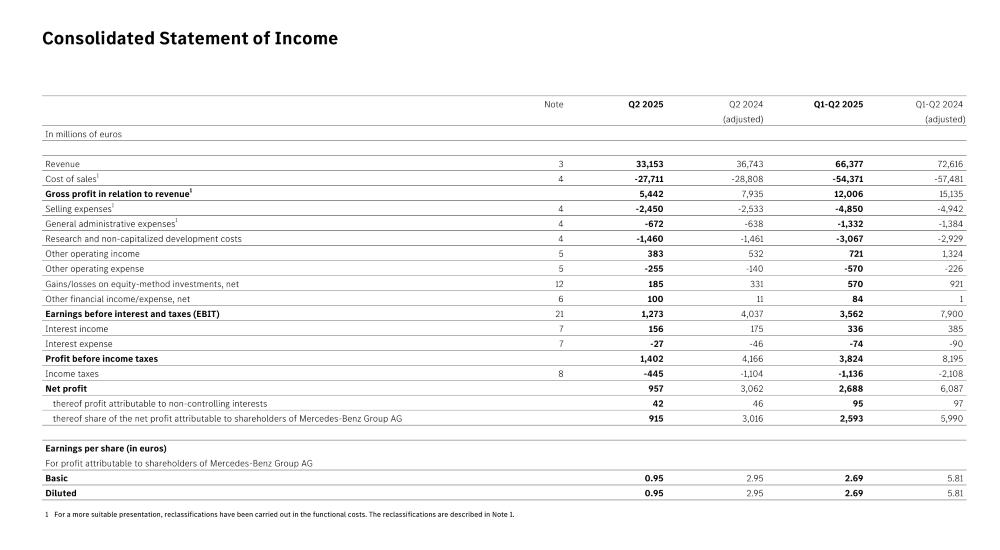 Currently, Mercedes has not announced the detailed performance of its third quarter in 2025. In the first half of 2025, Mercedes' revenue was 66.377 billion euros (about 547.862 billion RMB), a decrease of about 8.6% compared with 72.616 billion euros (about 599.358 billion RMB) in the same period last year.