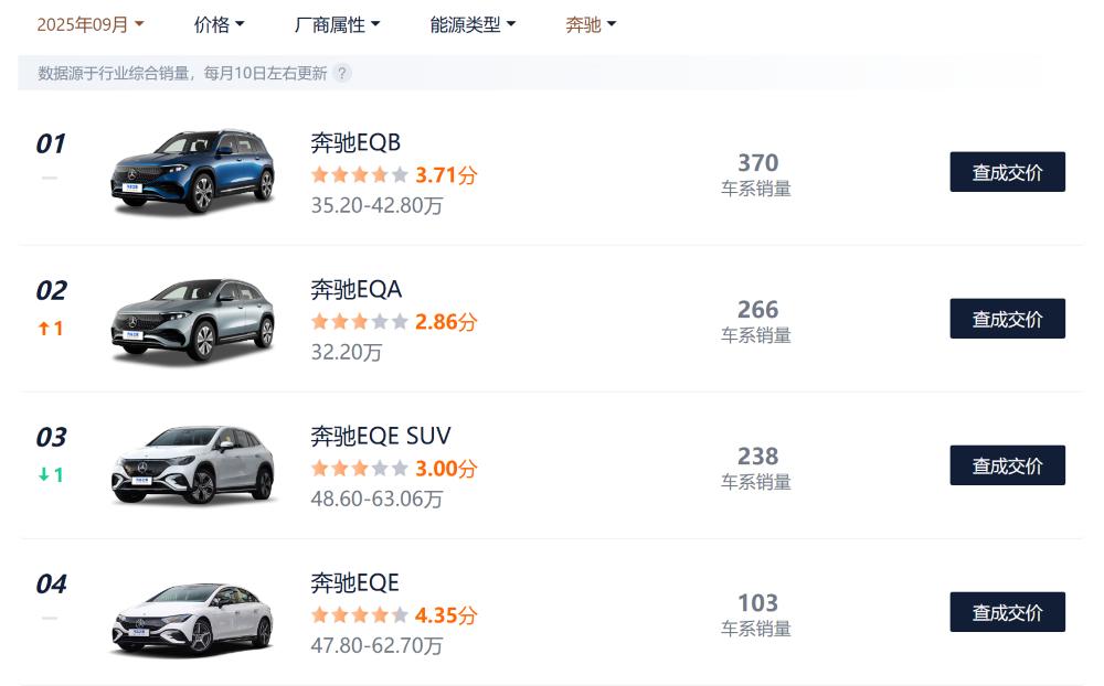 According to data from a third-party platform, the sales performance of Mercedes' EQ series is not good. In September this year, the sales of several EQ series models in the domestic market were only a few hundred units.