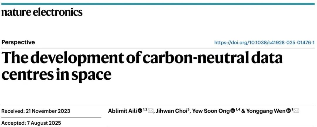 This perspective article published in Nature Electronics is significant in that it goes beyond the discussion of a single technology and for the first time systematically outlines the complete architecture blueprint of space-based computing infrastructure and establishes a corresponding full-life cycle environmental benefit evaluation methodology.