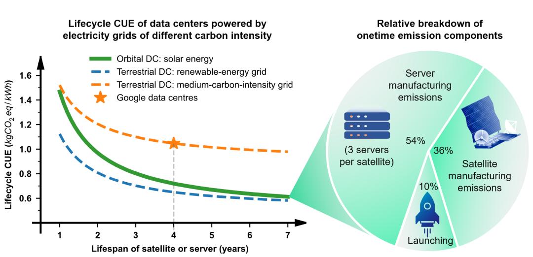 Preliminary modeling analysis using this model shows that although the orbital data center will generate significant "one-time" carbon emissions during the manufacturing and launch phases, thanks to its continuous carbon-neutral advantage during on-orbit operation, from a full-life cycle perspective, its carbon efficiency is expected to exceed that of ground data centers relying on medium-carbon-intensity power grids and gradually approach the level of advanced ground data centers powered by all renewable energy sources.