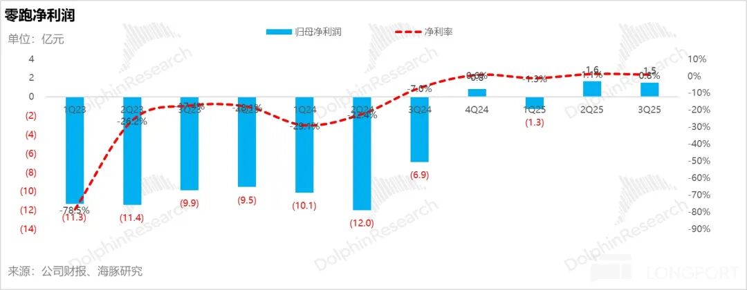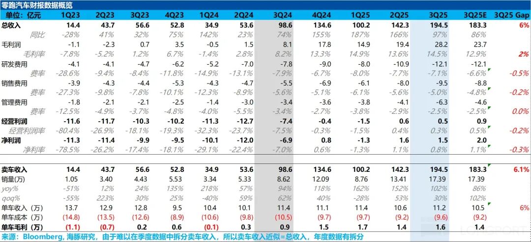 Overall, Leapmotor's total revenue and gross profit margin in the third quarter performed well, continuing to improve sequentially and both exceeding market expectations. However, the net profit was eroded due to the significant sequential increase in the three major expenses, showing a sequential decline and also being lower than the market expectation of 200 million yuan.