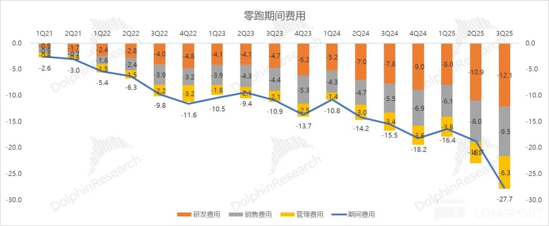 4. However, the three major expenses are still increasing, mainly because of the continuous increase in investment in intelligence and channel expansion: Leapmotor continued to increase its investment in the three major expenses this quarter. Among them, the R & D expenses were 1.2 billion yuan, increasing by 120 million yuan sequentially. This is mainly due to the continuous increase in investment in super - extended - range models and intelligence. The company previously planned to achieve end - to - end urban NOA capabilities before the end of the year.
