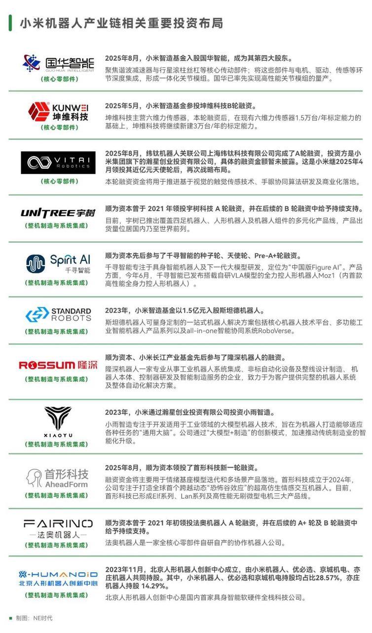 In addition to the continuous strengthening of its self - R & D system, Xiaomi's investment actions in the field of embodied intelligence are also worthy of attention.