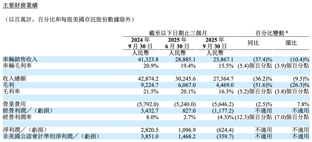 In the third quarter of 2025, Li Auto's total deliveries were 93,200 vehicles, a 39% year - on - year decrease. With sales far from the previous level, Li Auto's vehicle sales revenue dropped to 25.9 billion yuan, a 37.4% decrease compared to 41.3 billion yuan in the same period last year and a 10.4% decrease compared to 28.9 billion yuan in the second quarter.