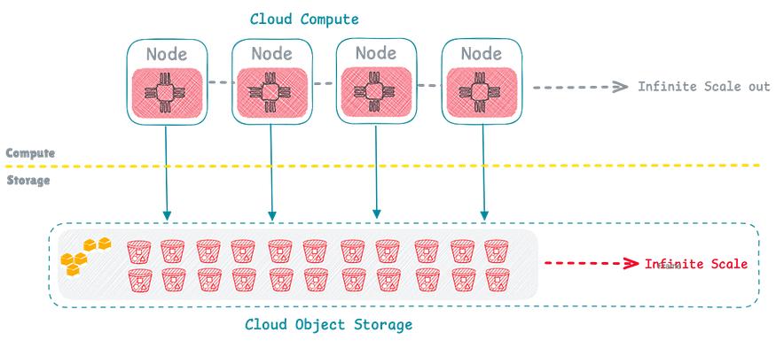 Cloud data warehouses solved this problem by storing all data in cheap, durable object storage (like S3, Google Cloud Storage, and Azure Data Lake Storage) and spinning up compute clusters on demand. Need to run a large report? Just scale up to 100 nodes, run the query in minutes, and then scale back down. You only pay for compute when the query is running, and the cost of static storage is very low.