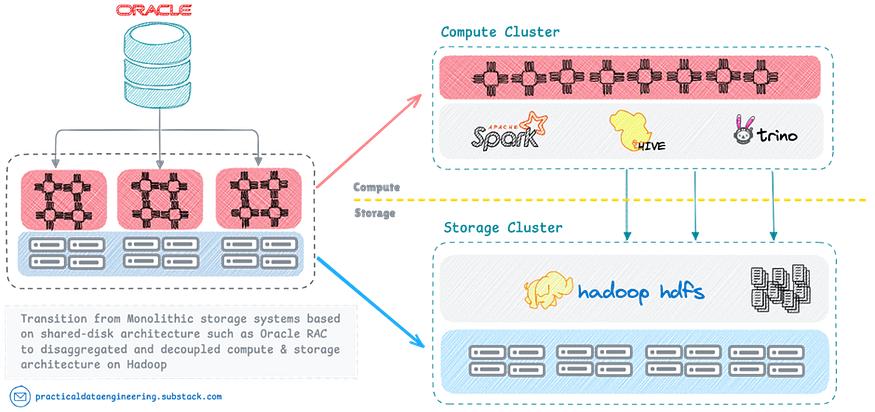 Traditional data warehouses couldn't handle this. They were designed to store structured data with a known schema, not raw log files or JSON documents. It wasn't economically feasible either - you couldn't afford to buy enough Teradata licenses to store petabytes of web crawler data.