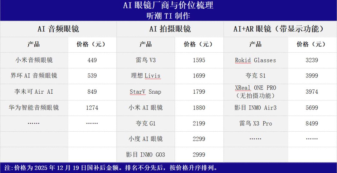 The entry of new car - making forces has opened up a differentiated track. On December 3rd, Li Auto's AI glasses, Livis, were officially launched, with a starting price of 1,999 yuan and 1,699 yuan after national subsidies. Li Auto deeply integrates its AI glasses with the in - vehicle system to meet the driving - related needs of car owners. This "scenario - specific" strategy allows it to avoid the fierce competition in the consumer market but also limits its audience.