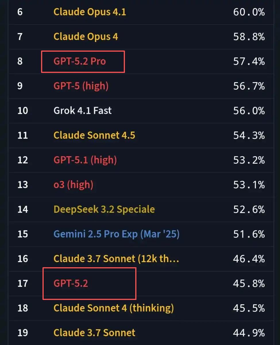 The doubts don't stop there. Bindu Reddy, a former AWS and Google executive, posted on a social platform, pointing out that GPT - 5.2 scored lower than Opus 4.5 and Gemini 3.0 on LiveBench. It also consumes significantly more tokens and has a higher token cost than 5.1, so it may not be worth upgrading from 5.1 at present.