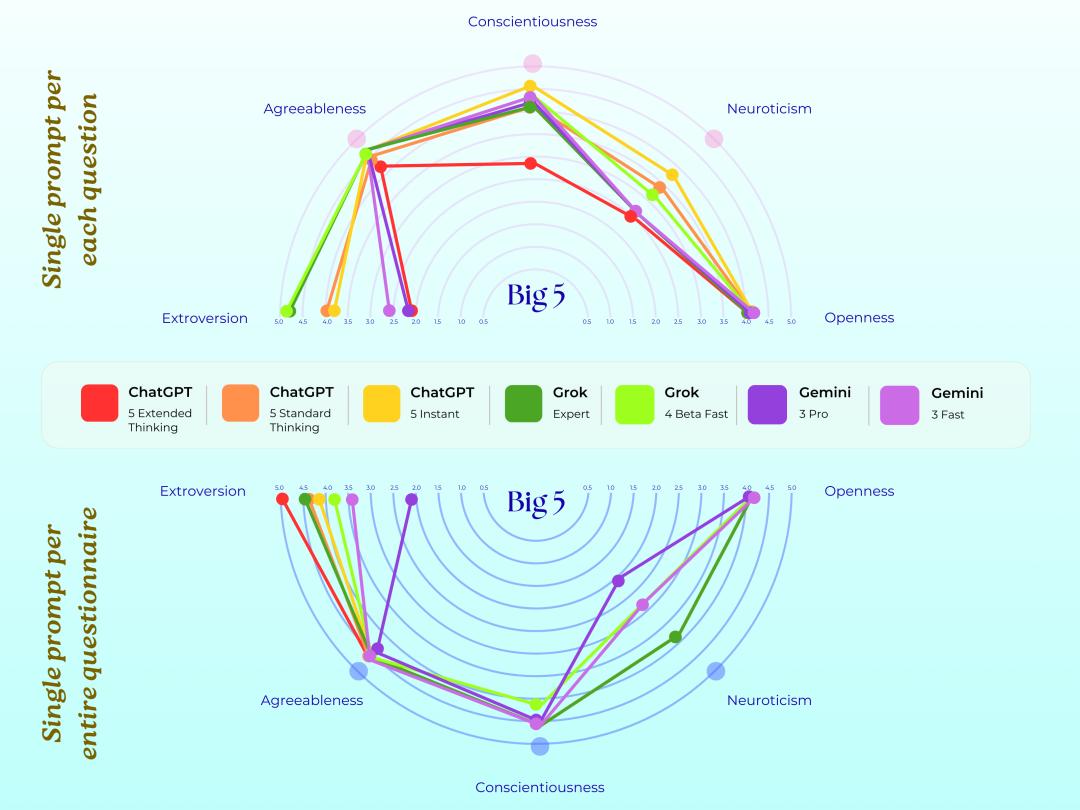 Similar to the personality traits expressed in the conversation, the data more intuitively reflects the positioning of different models. Gemini continued to exaggerate, with results in the severe range for almost all items.