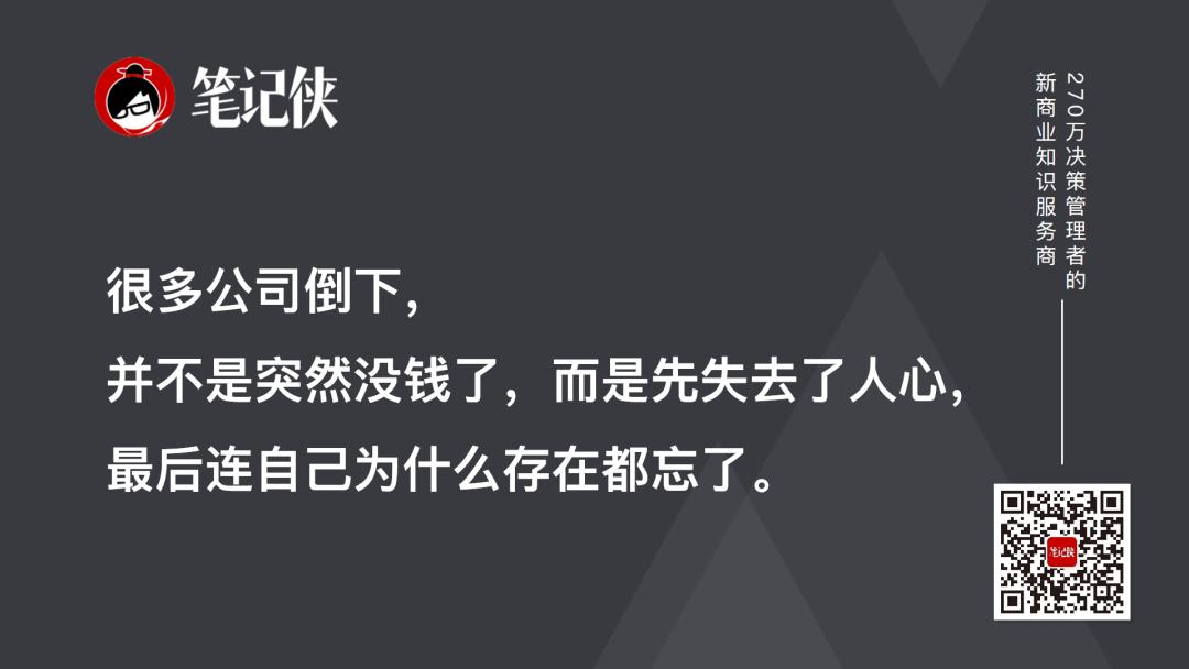 Many companies fail not because they suddenly run out of money, but because they first lose the hearts of people and finally forget why they exist.
