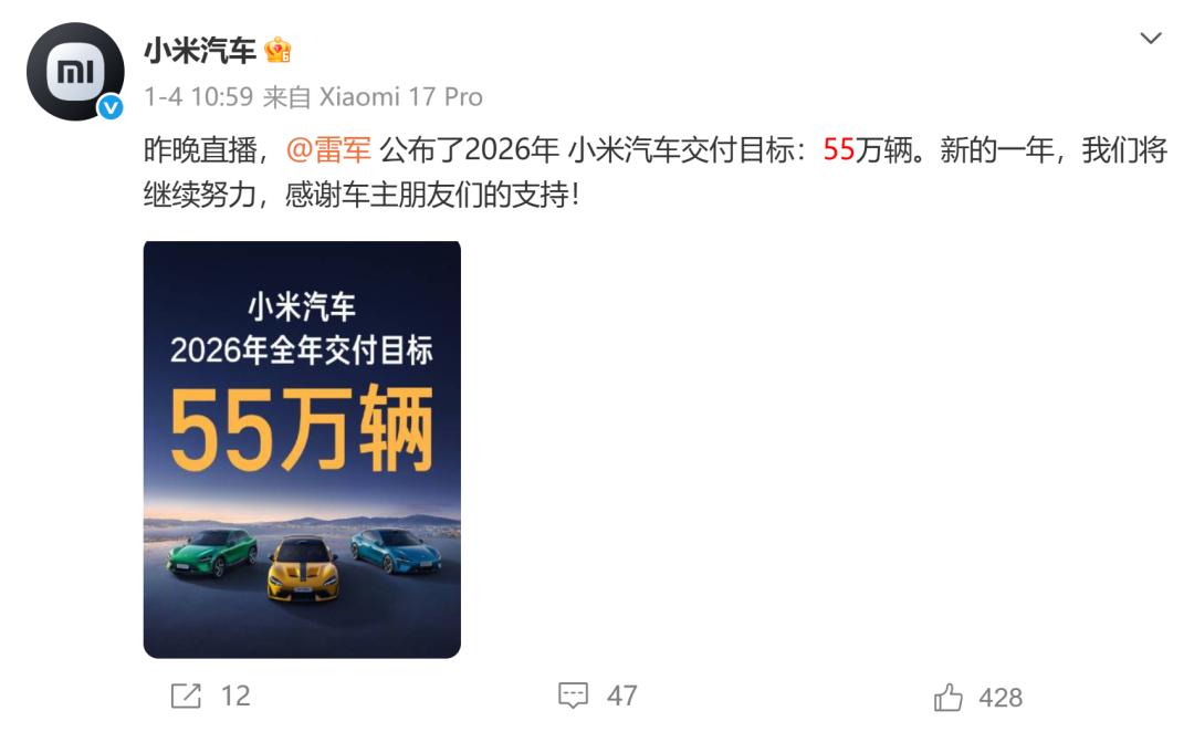 According to the plan, Xiaomi Auto has set a sales target of 550,000 units for 2026 (based on the estimated sales volume of 410,000 units in 2025, with a year - on - year growth rate of about 34%). Just looking at the growth rate itself, this goal is not radical. However, for a new brand still in the expansion stage, it means higher system requirements.